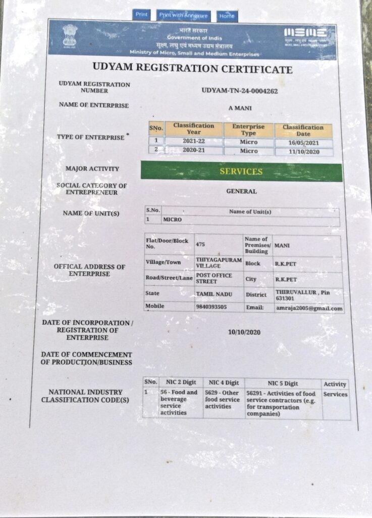 ✅ உத்தியம் பதிவு (Udyam Registration):