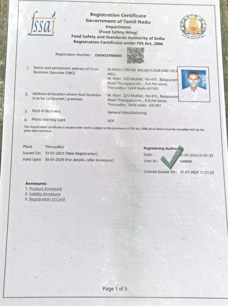 ✅ FSSAI சான்றிதழ்: